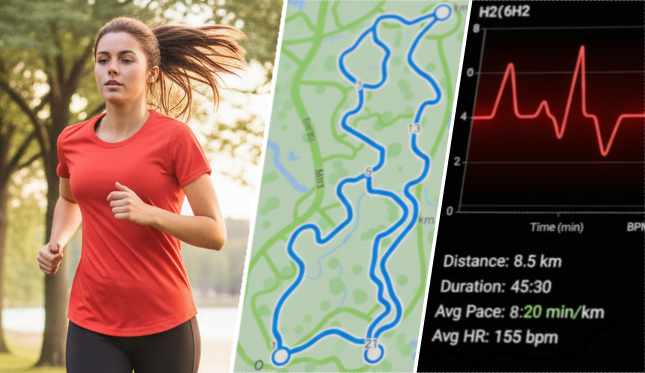 GPS tracking displays an interactive map during the workout. The trail, distance, and speed are saved in the history.
